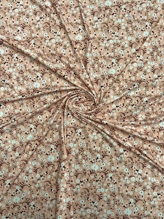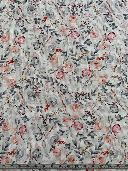 Anita Floral in Light Peach on Unbrushed Rib Knit Fabric Sold by the 1/4 yard
