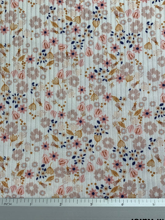 Amaya Floral in White on Mini Rib Knit Fabric Sold by the 1/4 yard