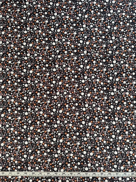 Amber Ditsy in Black on Brushed Rib Knit Fabric Sold by the 1/4 yard